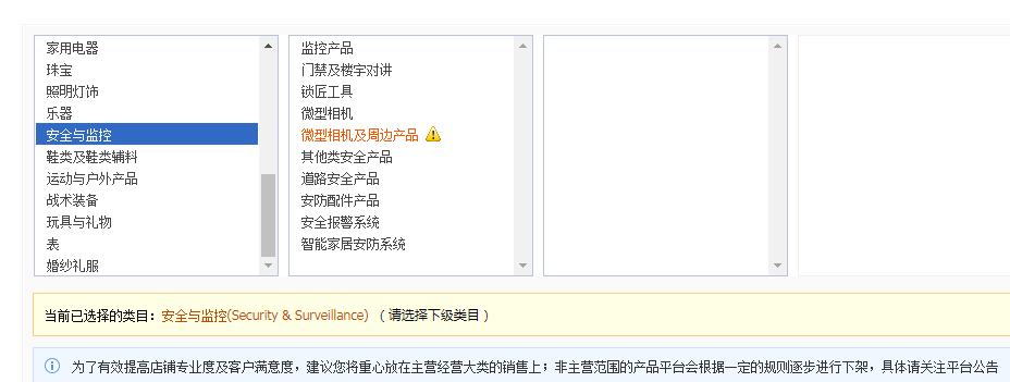 安防产品上传类目: