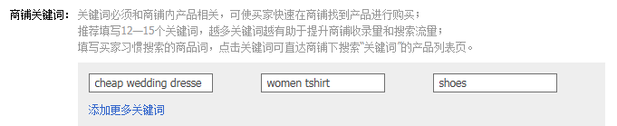 选择能体现产品的核心的英文关键词进行填写,对于SEO作用比较大。便于敦煌网在站内相关产品或内容中推广卖家的产品,提高产品曝光量,利于搜索引擎通过该关键词引流到您的产品页,不要填写单个word的关键词。