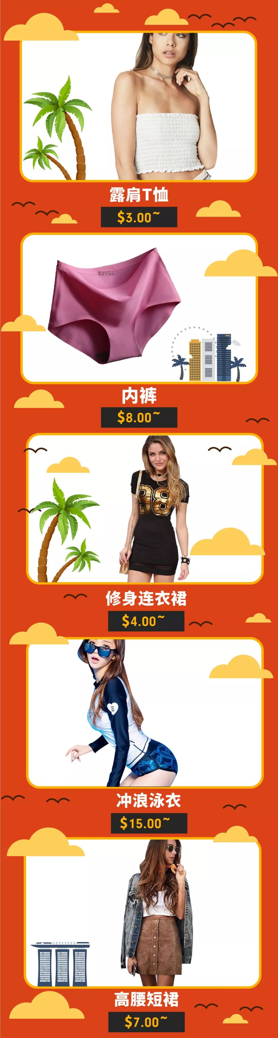 新加坡较为开放,清凉性感是流行服饰的主调~以下是9.9超级购物节热卖女装款式: