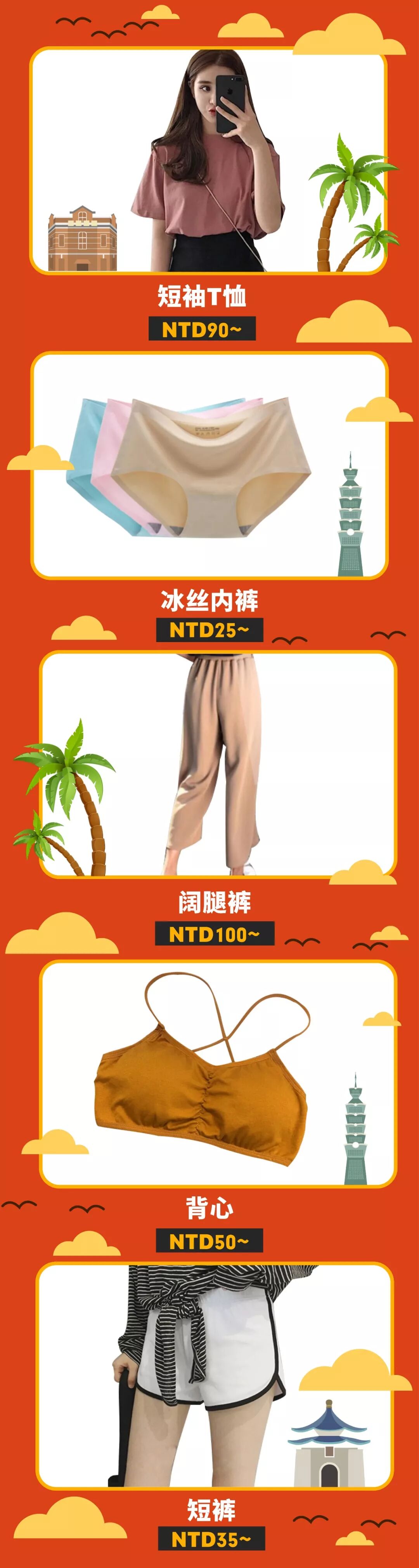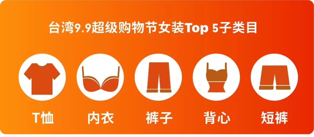 女装是跨境卖家在台湾市场销量最好的品类之一。日韩风格、价格实惠的T恤、背心和内衣等非常受当地女生欢迎,以下是今年9.9超级购物节女装热推的子类目: