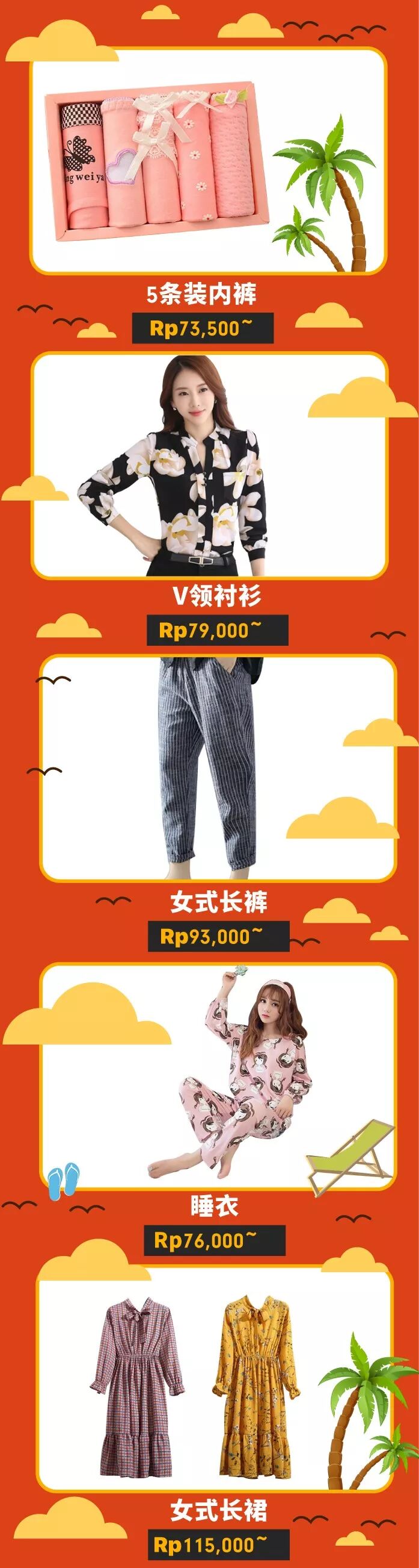 印度尼西亚站点的女士内衣、上衣、睡衣、裤子和长裙最受欢迎。