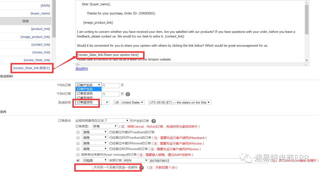 2.亚马逊30天无理由退货服务让很多卖家非常头疼,Listing因为退货率太高被下架,又不知道是什么原因导致的。于是我们需要针对FBA退货客户群发一封邮件询问退货原因,方便改进品质。
