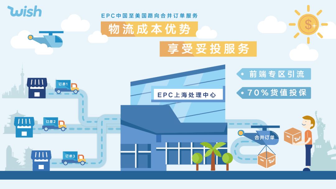 EPC(Export Process Center)是Wish提供的一项出口处理中心服务,平台根据用户的订单情况,将同一买家跨店铺购买的商品进行合并发货并派送。