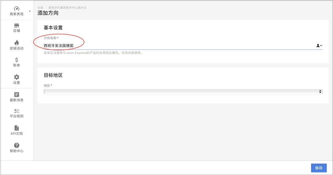 卖家可以在Joom系统里添加自己使用的国内的仓库以及海外仓。在后台的仓库页面,卖家可以提供仓库地址等信息,并为单个仓库设置多个“方向”。