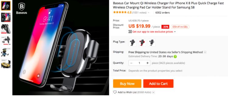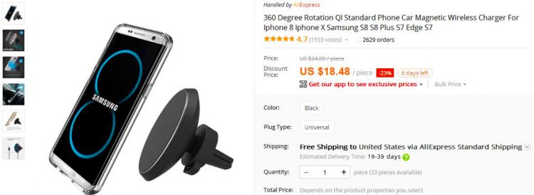 目前速卖通市场上无线车载充电器大致可分为两种型号,一种是磁吸式,一种是支架式,本次微分析(weanaly.com)选品攻略选取了速卖通表现较好的两款无线车载充电器(以下简称为充电器)作为对比,看看究竟哪种型号和详情页设计更受买家青睐。