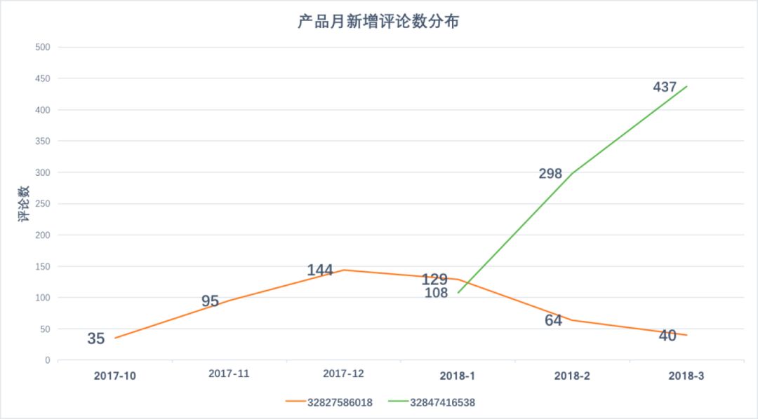 2)虽然支架式充电器上架时间较晚,但是它的评论数在短期内获得了惊人的增长,2018年1月新增评论数为108条,而2018年2月新增评论数达298条,增长率高达176%,3月份评论数更是一路高歌猛进,可见其巨大的市场潜力。