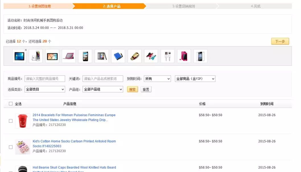 类目范围:目前仅允许婚纱、家居、玩具、手机&附件、家用电器、母婴、运动户外、时尚配件、服装、电脑、发制品、电子烟、健康美容、鞋、游戏、相机类目发起拼团。