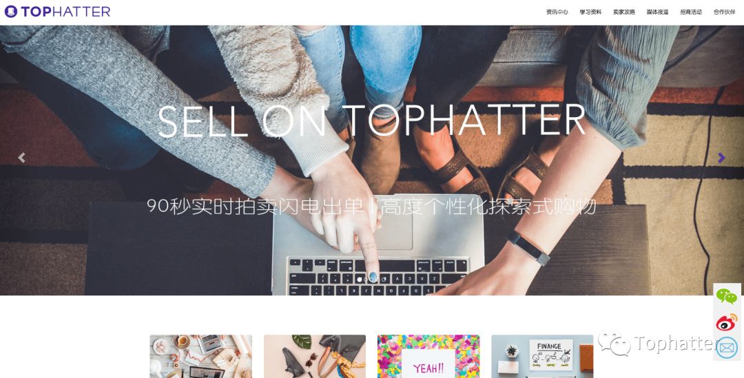 盼望着, 盼望着, 网站来了, 大卖的脚步近了~ 为了使中国用户能够更加便捷地获取Tophatter在全球提供的服务内容和动态更新,我们很高兴在这里宣布:Tophatter中文卖家中心正式上线啦! 网址:www.topsellers.cn(点击文末“阅读原文”进入) 我们的卖家中心同时支持PC端和移动端,并优化了自适应功能,接下来,就让小编带你去看看具体都包括哪些内容。 2. 资讯中心 点击资讯中心,查看行业新闻分享以及电商趋势分析。 3. 学习资料 不管是新卖家起步,还是大卖家更新,都可以在学习资料中找到,后续我们会不断完善这一板块的功能,包括录制视频教程等,各位卖家可以持续关注,也欢迎提出宝贵建议。 4. 卖家攻略 只是与我们平台政策保持同步是不够的,我们还要站在巨人的肩膀上,查看平台大卖家分享,关注平台热销品类,学习销售技巧,后面我们还会推出卖家日历,持续为各位卖家推出各个季度或节日的选品建议。 5. 媒体报道 想获取更多关于我们国内国外的专访吗?包括我们的模式、方向和技术等等,欢迎浏览“媒体报道”! 6. 招商活动 想亲临现场了解我们的更新吗?后面会持续在这里发布招商活动信息。 7. 合作伙伴 关注我们的支付方式、物流合作伙伴。 如以上所说,我们的网站在后续会有不断的扩充和更新,还请各位卖家持续关注。Tophatter感谢大家一直以来的支持,也欢迎大家提出宝贵建议,我们将继续努力提供更多有效信息,全力扶持中国卖家的业务发展!敬请期待!: )
