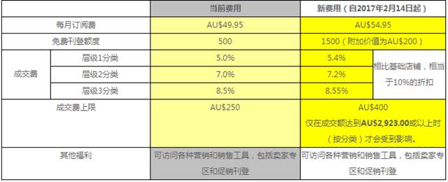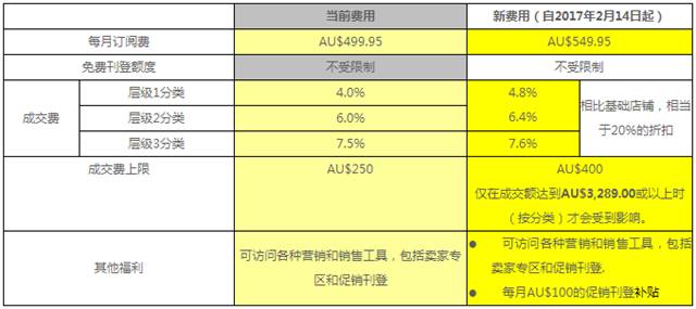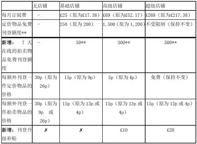 eBay刊登费(2017年3月30日起正式生效)和店铺开设费(2017年4月1日起正式生效):