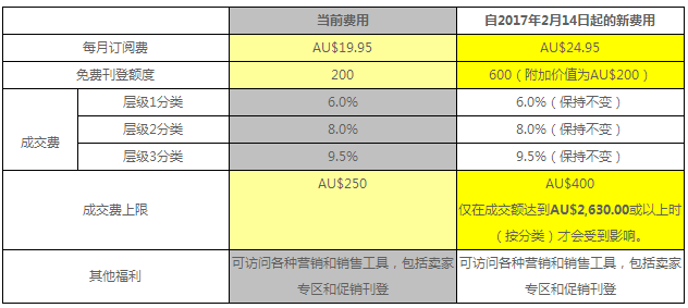 注:所有卖家的成交费以及个人卖家的销售费和刊登升级费都将保持不变。