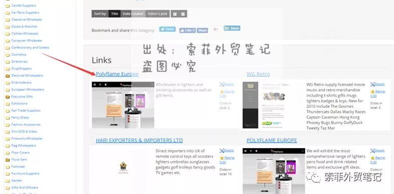 根据种类点击进去会找到看到相应批发商的网站和联系方式: