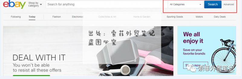 打开Ebay后,会看到搜索Search旁,有个Advance. (高级搜索)点击进去: