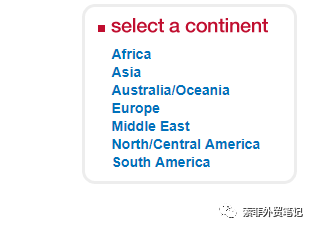 除了根据种类搜索,也可再结合具体的地区来对应搜索:(点击每个国家,会相应出现国家中的具体城市/地区)