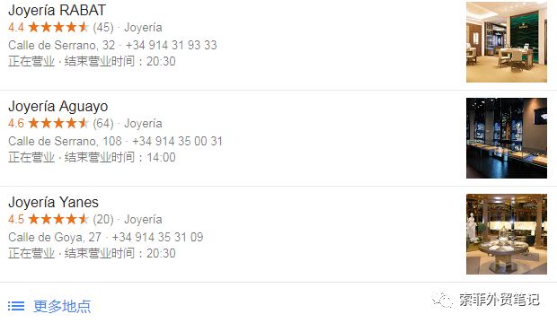 输入:joyería en Madrid 马德里的首饰店,再进一步查找分析,搜索会更精准些。