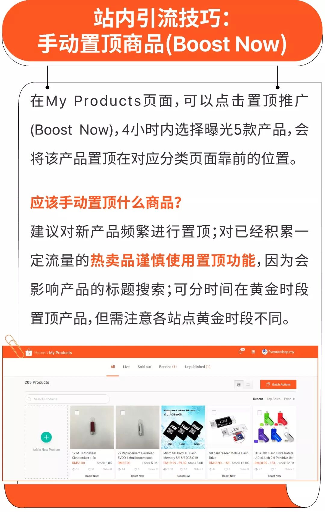 前两期Shopee大学精华分享,教大家透过4大方法:类目、搜索、购买关键字广告、报名后台活动进行站内引流;本期再为大家支招,讲解3个运营小技巧:分时段上新、手动置顶商品(Boost Now)、关注粉丝~ 活用这7大招式,站内引流绝对杠杠的!