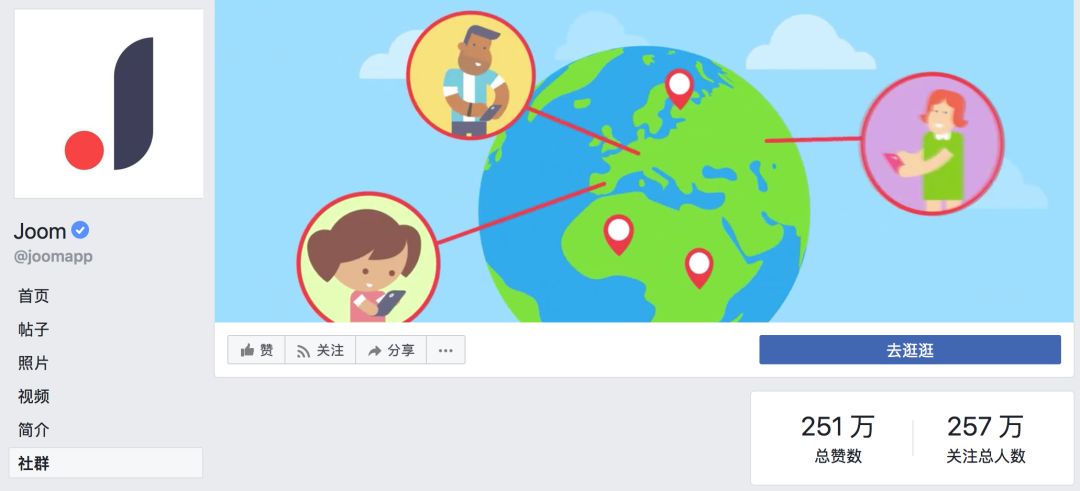进入Joom在facebook的主页后,页面上方会自动播放一个20秒的背景视频。下方gif是原视频的三倍速。