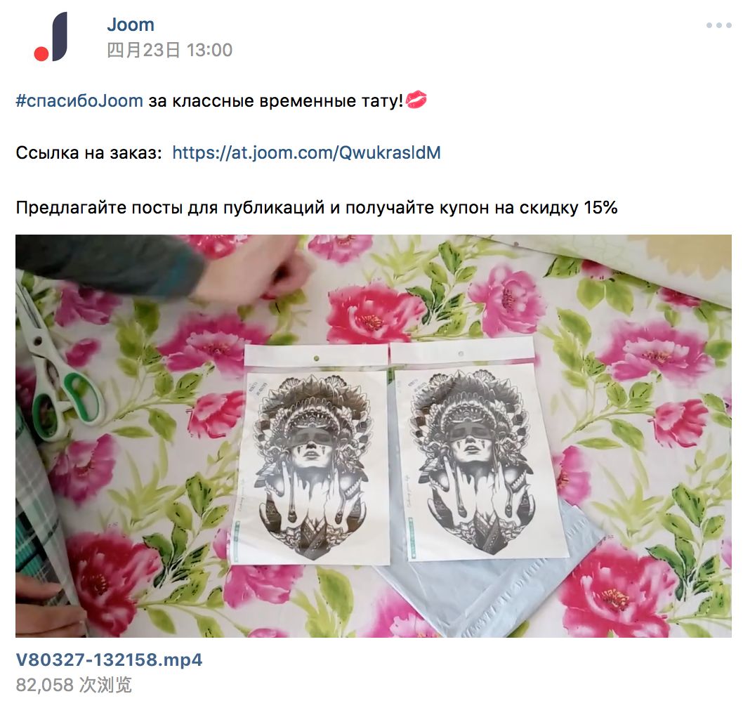 Joom在VK里主要是发一些顾客自己拍摄的产品拆包的视频,算是产品“带图评价”的升级版吧。