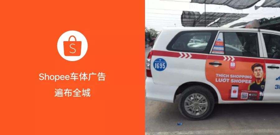 在越南大城市的马路上随手招个出租车也可以看到Shopee的车体广告噢!
