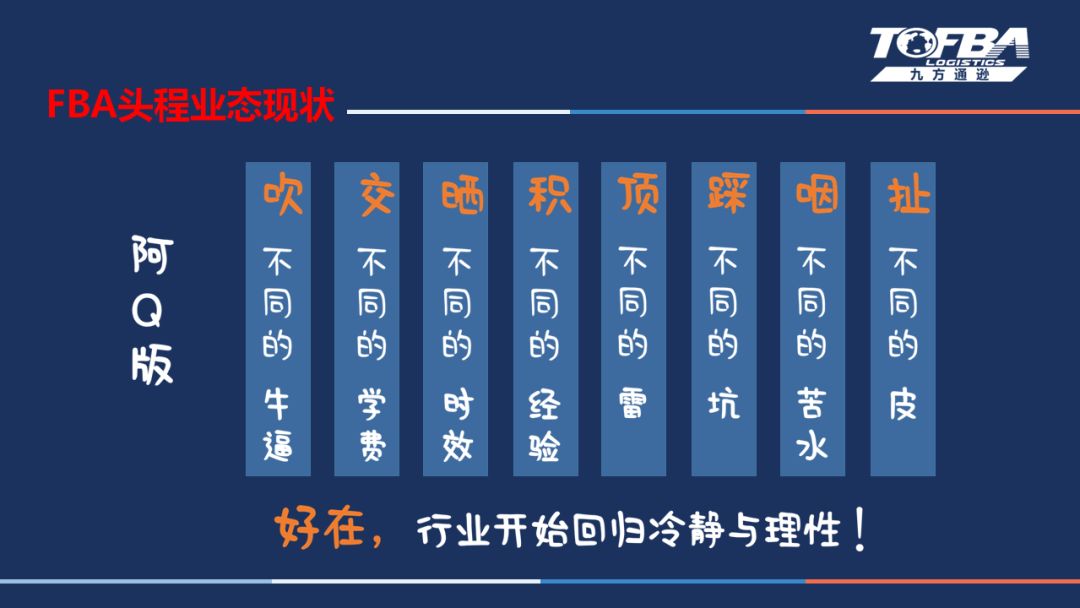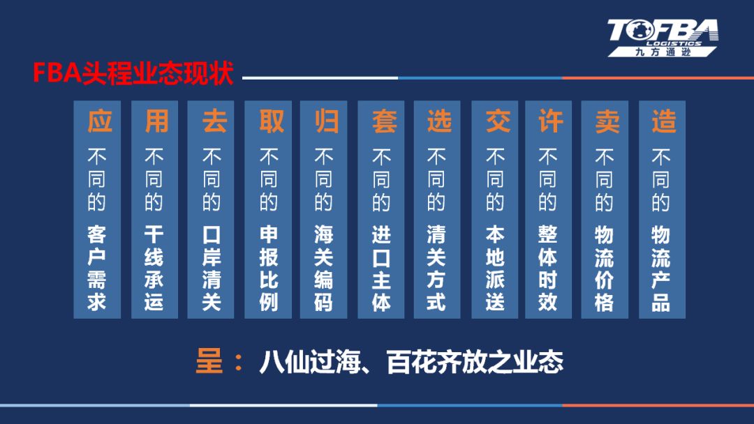 首届跨境物流趋势大会,现场火爆,九方通逊创始人陈俭受邀出席,做主题为:FBA物流模式变化与机遇 的分享,现场不少朋友反应分享很接地气,说出来很多同行的心声! 在这里将分享的PPT再次推送一次,希望能分享给更多同仁们!