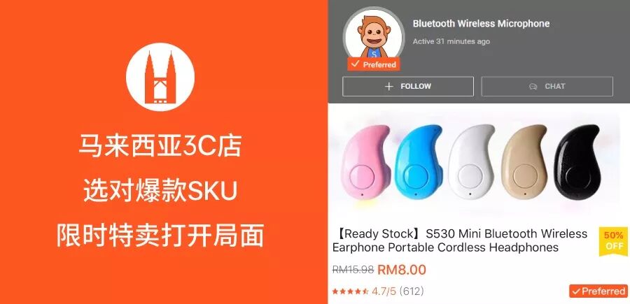 该店铺主营电子类商品,2017年8月开始在马来西亚卖一款无线蓝牙麦克风。初期该产品市场认知度低,经过一段时间的培育,在10月底上了一次限时特卖(Flash Sale),并保持了2周低价后,这个产品的局面就完全打开了。