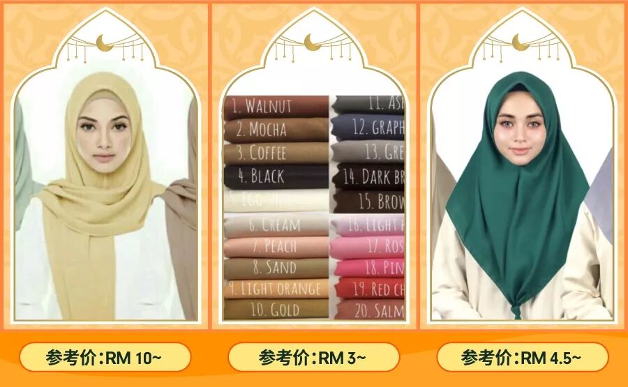 了解完穆斯林时尚知识,抢攻头巾(Hijab)和祷告长袍(Telekung)两大热卖子类目自然信心十足!斋月爆单大促即将开启,卖家朋友们还不快拿着这份选品指南去上架商品?!