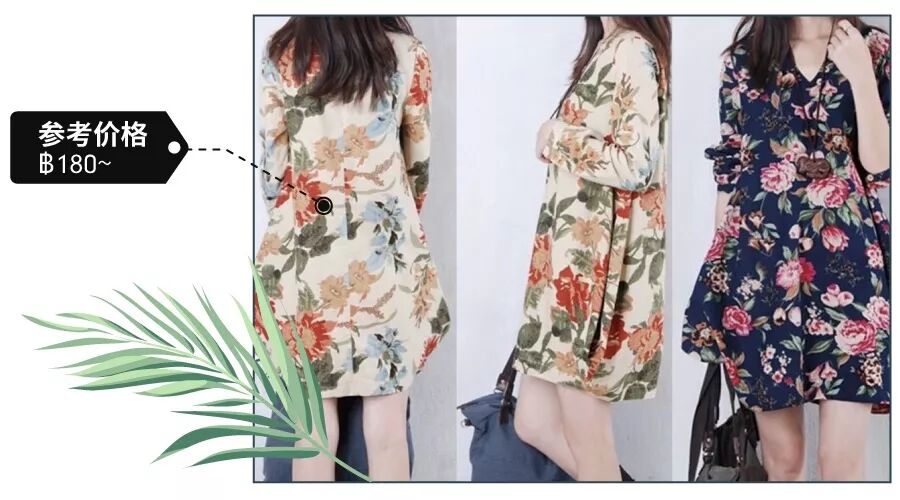 复古印花也是泰国人民永恒的最爱。印花图案搭配米色和粉蓝,色调轻柔,散发着春夏的气息。碎花连衣裙是泰国畅销款式,典雅的图案和清爽的颜色让女生甜美十足。