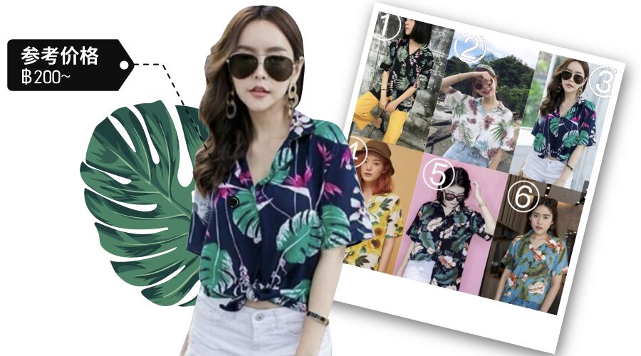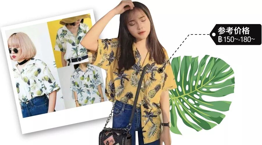 很多泰国女生喜欢将夏威夷衬衫的衣角绑起并搭配短裙,变成活力满满的元气少女!这样的穿搭,无论是逛街还是上班都很合适。卖家可多备货宽松版式。