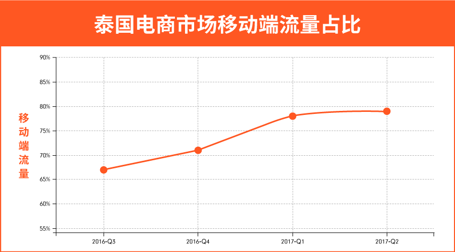 据We Are Social报告,泰国网民约5700万,占人口82%,网民每天在线时长超过9小时,全球排名No.1。越来越多泰国消费者开始网购,预计2021年泰国网购人数将达到1400万。其中,移动端是主流,2017年泰国电商平台79%的流量来自移动端。