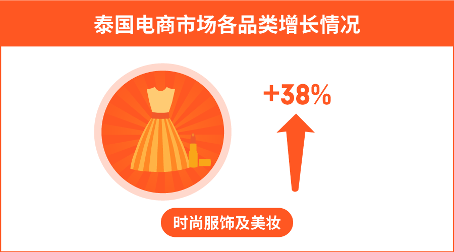 泰国电商市场钱景广阔,时尚服饰、美妆为最热卖品类。时尚美妆品类消费总额增长最快,增速高达38%。泰国网购者每年花费在时尚美妆产品的金额达5.3亿美金。Shopee拥有海量女性用户,女装品类销量超高。