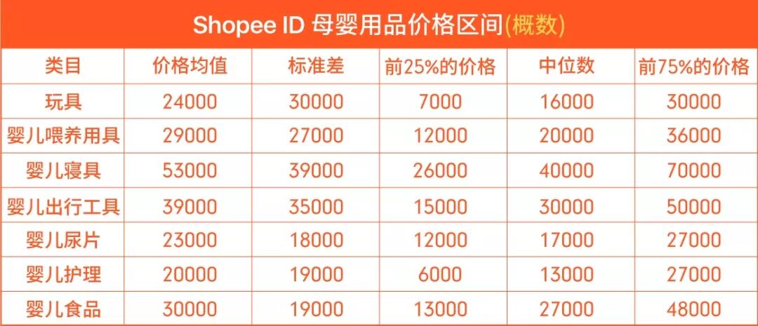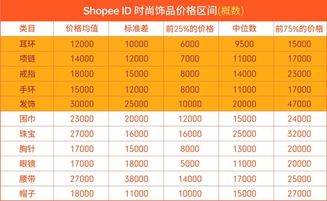 针对印度尼西亚市场重点品类,Shopee有识之士统计了热卖SKU价格区间,助力卖家快速锁定合适的价格。温馨小提示:下列表格中,子品类按照单量大小排序,卖家可将前5个子品类作为重点。