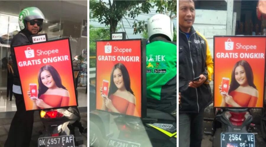 Shopee渗透印度尼西亚人民生活点滴不是开玩笑!当地随处可见Shopee周游全国的“移动”广告。数千辆摩托车带着Shopee的广告驰骋在印度尼西亚的各大城市。