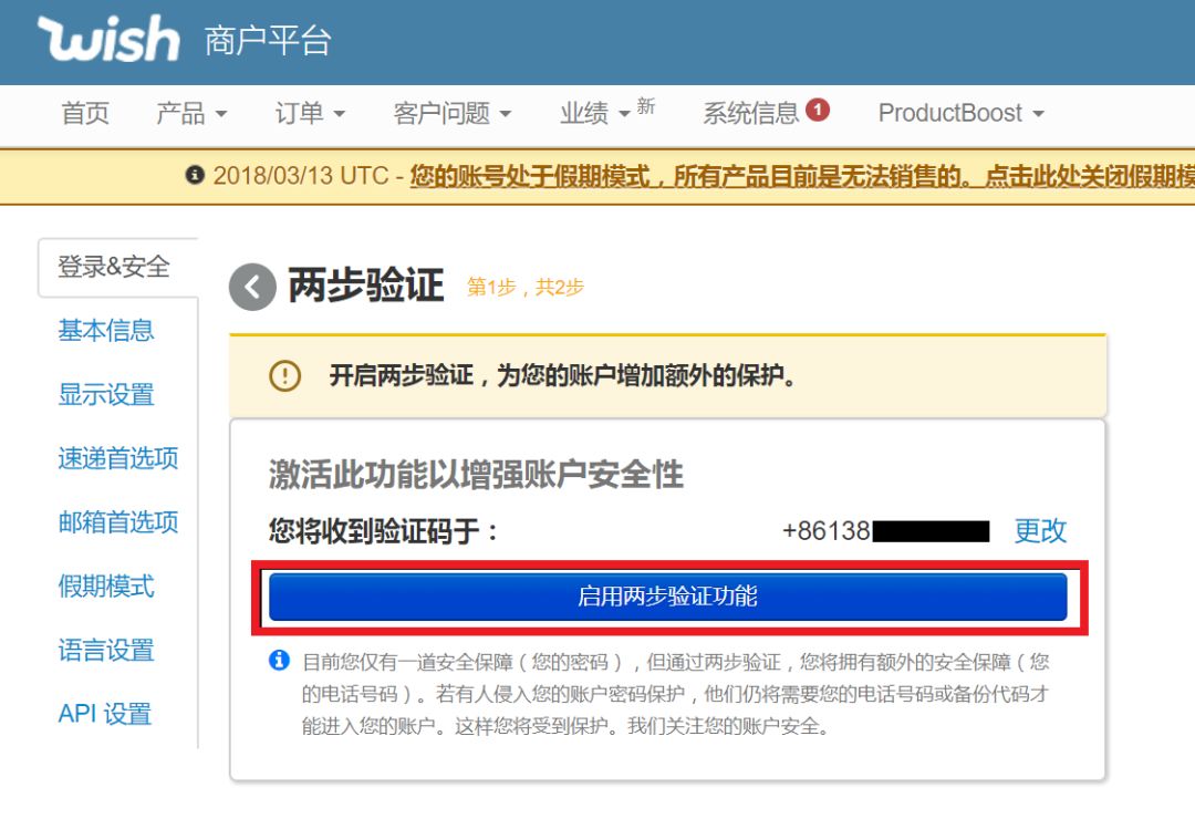 企业的Wish账号通常由员工运营,账号预留的手机号码很可能是员工的个人手机号码,在员工职位变动或者是离职时,务必要更改账号手机号,避免不必要的麻烦。