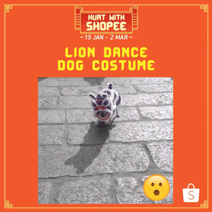 Shopee新加坡站点与用户打成一片,携穿戴着舞龙宠物装的狗狗向新加坡人民拜年,向粉丝提供新年商品创意,吸引消费者上Shopee购买!