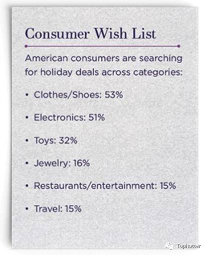 美国消费者在节日期间希望购买的商品品类: