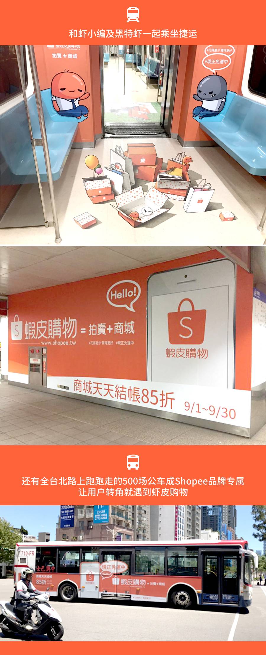 台湾人民出行绝对不能少的捷运,铺天盖地都是虾皮购物的广告。从现在开始直到九月底,虾皮购物天天85折,让用户对我们爱爱爱不完~