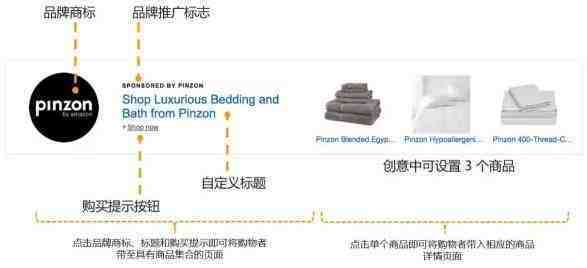 每个横幅广告最多展示三个ASIN;卖家可以定制他们的标题,并将广告链接到一个自定义着陆页。