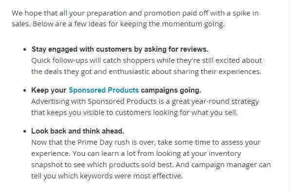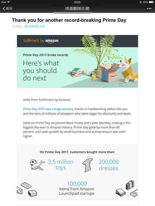 其中有一份是亚马今天早上,你打开邮箱的时候逊发来的一封致FBA卖家在PrimeDay期间割肉(促销)回馈亚马逊买家的感谢信。