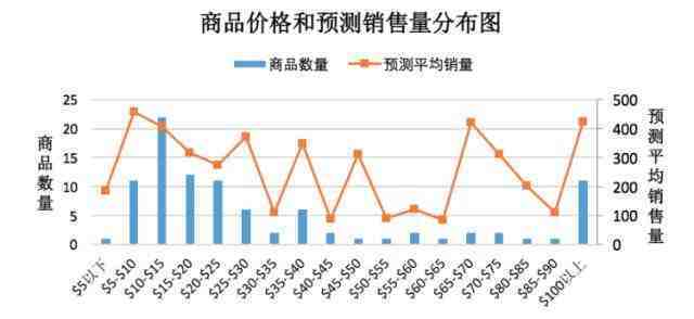 2.销售分散在各个价格区间, $5-$15适合作为定价参考