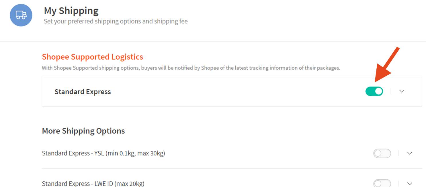 如此高效实惠的物流渠道,如何开通呢?无需新合同,无需核对信息!只需要在后台一键开通!卖家可以通过以下路径在店铺层面开启SLS物流渠道:Seller Centre→Shop Settings→My Shipping→开启Standard Express,如下图所示: