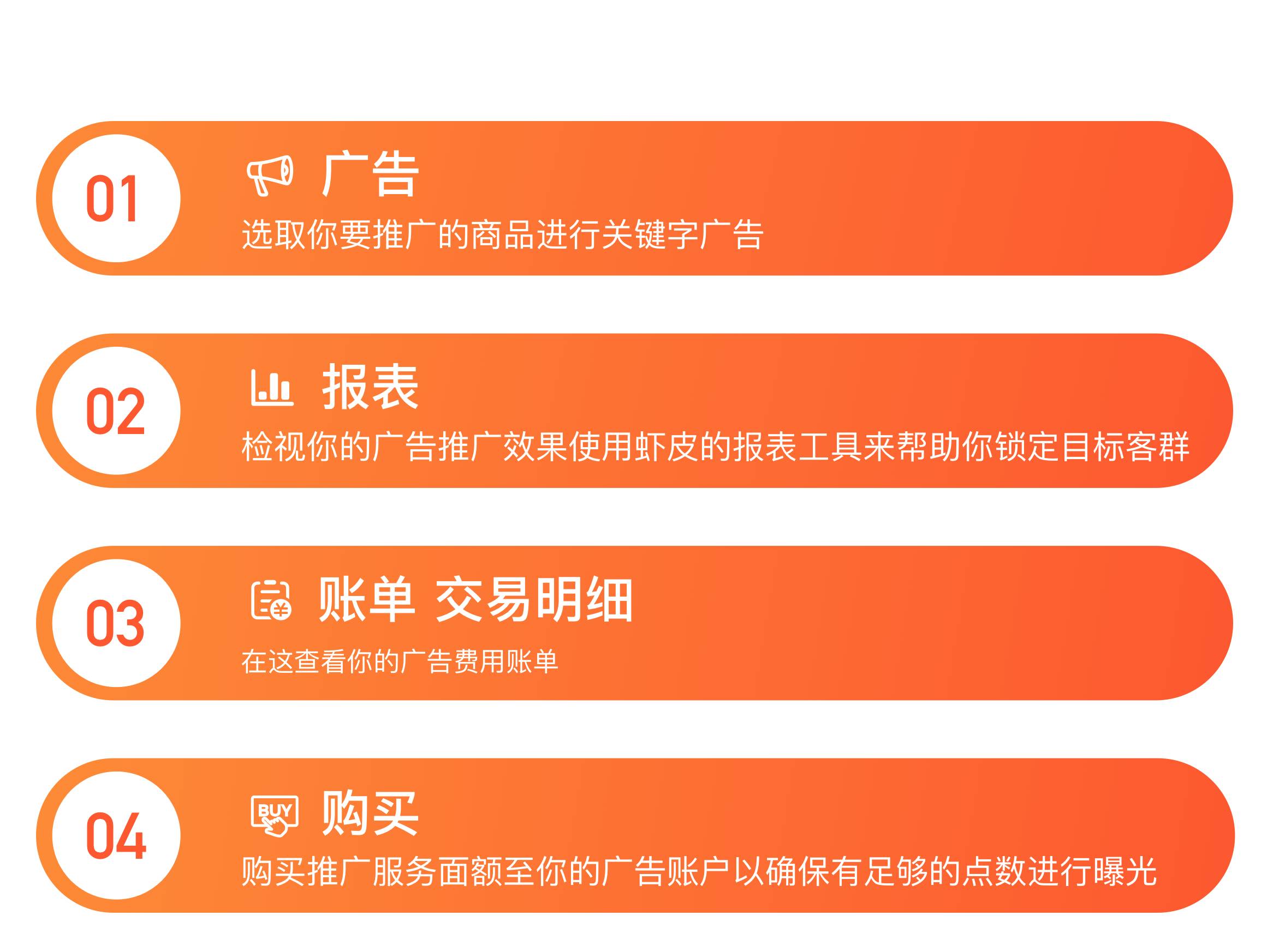 为满足卖家增加曝光的需求,Shopee台湾站、印尼站根据搜索关键词率先推出了关键字广告。通过付费广告,商品能增加在平台的曝光机会。卖家可选取要推广的商品进行关键字广告,自定义每次点击的价格,购买推广服务面额。平台以点击计价,后台提供报表管理,让卖家能依照销售需求优化自己的关键字广告,随时随地为自己的商品增加曝光。