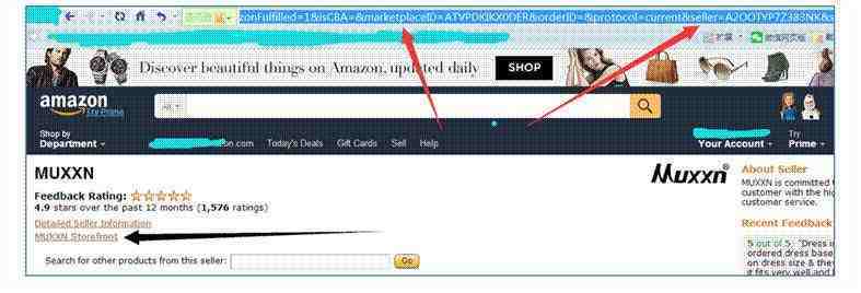 如果在上图找不到,可如上图黑色箭头所示,进入卖家的Storefront,在网址处可以找到你需要的。