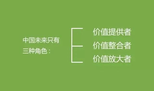 一维世界正在推倒重建,二维世界被划分完毕(BAT掌控),三维世界正在形成,高维挑战低维总有优势。所以网店可以冲散实体店,而微信的对手一定在智能领域诞生。因此,真正的好戏还在后头! 2、中国当下的企业分为三个等级: 3、中国互联网进化论: PC互联网解决了信息对称,移动互联网解决了效率对接,未来的物联网需要解决万物互联:数据自由共享、价值按需分配。水木然认为互联网+的本质就是搭建一个底层建筑,使上面的每一个人都可以迅速找到目标。无论是找客户、找恋人还是找伙伴。 4、中国电子商务进化论: PC互联网解决了信息对称,移动互联网解决了效率对接,未来的物联网需要解决万物互联:数据自由共享、价值按需分配。互联网+的本质就是搭建一个底层建筑,使上面的每一个人都可以迅速找到目标。无论是找客户、找恋人还是找伙伴。 5、中国的电子商务正在改变城市格局。 “北上广深”正在变成“北上深杭”。传统贸易的衰落将广州拉下马,跨境电商的兴起将杭州扶上位,未来中国的城市格局应该是“北京的权力调控+上海的金融运作+深圳的智能科技+杭州的电子商务”。 6、中国经济结构进化论: 从“按计划生产、按计划消费”,到“按市场生产,按利润分配”,再到“按消费生产,按价值分配”,水木然认为未来中国一定会“按需求生产,按需求分配”,满足人的一切需求,这就是共产主义。 7、中国产业链的流向正在逆袭。 因此,传统经销商这个群体将消失,而能够根据消费者想法而转化成产品的设计师将大量出现。 8、中国广告业态的进化论: 传统广告总是依靠媒介的力量去影响人,比如央视的招投标。后来的互联网广告开始依靠技术实现精准投放,比如按区域、按收入、按时段投放。再后来社交媒体的崛起使好的广告能自发传播,而未来最好的广告一定产品本身,最好的产品也一定具备广告效应。 9、中国商业角逐的核心先后经历了: 房地产经营的就是地段,传统互联网经营的就是流量,自媒体经营的是粉丝。而未来是“影响力”和“号召力”之争,“核心粉丝”的瞬间联动是未来商业的“引力波”。 10、中国媒体的进化论: 媒体正在由集中走向发散,由统一走向制衡。自媒体的兴起将产生两大结果,第一激起了很多人的创作热情,文字作为人的一种基本属性终于被找回,感性的一面被激发,可以滋润这个越来越机械化的世界。第二,中国的话语权开始裂变,普通民众迫切要求参与公共事务的决策权,比如春晚到底该邀请谁。而未来人人都是一个自媒体,信息流的产生让媒体消亡。 11、中国将越来越细分: 行业将越来越垂直、协作越来越完善。因此传统的木桶原理不再成立,以前我们总在弥补自己短板,因为你的短板限制了你的综合水平,是今后我们将不断延展自己长处,因为你的长处决定了你的水平。水木然认为你只需要将自己擅长的一方面发挥到极致,就会有其它人跟你协作,这叫长板原理。 12、新的社会架构讲究的是“规则”而不是“关系”。 中国社会的传统关系网被不断撕裂,以价值分配为关系、新的链接正在形成,每个人都是一个节点,进行价值传输。新的社会架构讲究的是“规则”而不是“关系”。而你所处的地位和层级,是由你所带来的价值决定的。 13、中国人正在由外求变成内求。 外求即就求关系、求渠道、求资源、求人脉,求机会,内求即坦诚面对自己内心最真实的一面,激发起兴趣、热情、希望、理想,当你做好你自己,外界的东西就会被你吸引过来,这就是所谓的求人不如求己。 14、信用无价 对于未来每个人来说,有一个东西会变的很重要,那就是信用。行为——信用——能力——人格——财富。在大数据的帮助下,你的行为推导出了你的信用值,然后以信用度是支点,能力为杠杆,人格为动力,联合撬动的力量范围,就是你所掌控世界的大小。 15、传统社会的总财富是这样创造出来的 人们依托固定公司,在固定时间、固定地点重复固定的劳动,属于被动式劳动。未来社会的总财富是这样创造出来的:人们依靠自身特长,点对点的对接和完成每一个需求,充分融入到社会每一个环节,属于主动式创造。因此整个社会财富将实现裂变式增长。 16、中国99%的公司和集体都将消失,各种垂直的平台将诞生。 大量自由职业兴起。中国社会的组织结构从公司+员工,变成平台+个人。每个人都将冲破传统枷锁的束缚,获得重生的机会,关键就看你是否激发了自身潜在的能量。这才是一场真正解放运动! 17、未来每一个人都是一个独立的经济体。 即可以独立完成某项任务,也可以依靠协作和组织去执行系统性工程,所以社会既不缺乏细枝末节的耕耘者,也不缺少具备执行浩瀚工程的组织和团队。 18、未来如何拥有自己的产品? 当你有一个想法时,你可以先表达出来,然后在平台上进行展示(这样的平台会越来越多),然后吸引喜欢的人去下单,拿到订单后可以找工厂生产(不用担心量太少,今后的生产一定会精细化和定制化),然后再送到消费者手里。 19、中国今后将无工可打。 打工的本质是定价出卖自己的劳动力,并不承担结果。随着雇佣时代的结束,你必须主动思考和去解决问题,并竭力发挥自己的特长,为社会和他人创造价值,否则你就没有存在的价值。水木然认为中国人的工作方式正在从“谋生”到“创造”升级。 传统社会只所有生意可做,是