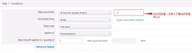 1、buyer purchases(购买的数量)设置一定要大于赠送的数量,即至少需要设置的是“买2个送1个”,同理,我们还可以设置“买3个送2个”、“买4个送2个”、“买4个送3个”依次类推;