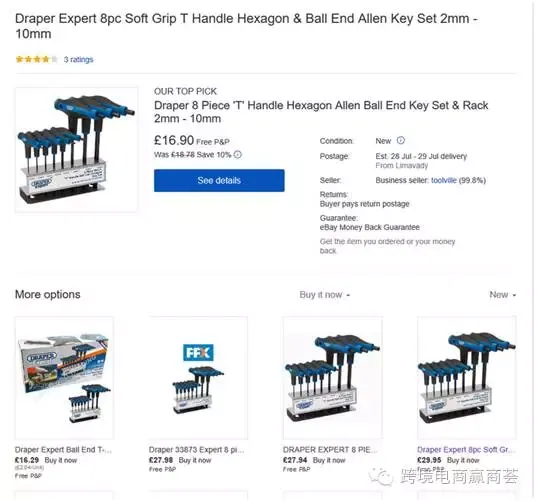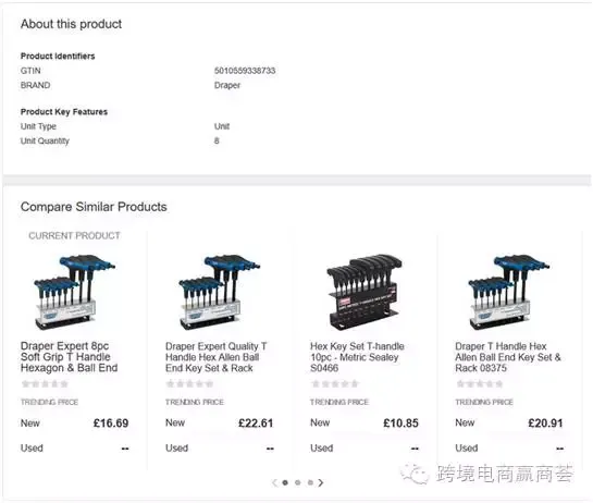据了解,在eBay搜索产品时,任何拥有正确标识码比如EAN或者MPN等产品的listing里,页面上端会出现“see more……”的导航。