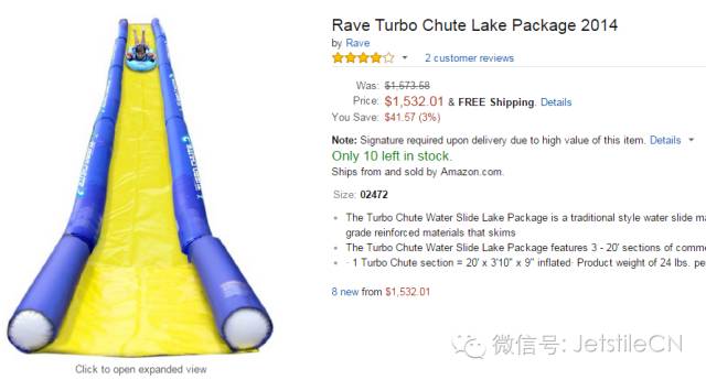 比如,Rave Turbo Chute这款水滑梯,以前亚马逊会标注出降价36%这样的信息,还有一种方式是list价格$1573.59,曾经卖过$1573.59,降价到$1532.01这种打折,能看出比较。