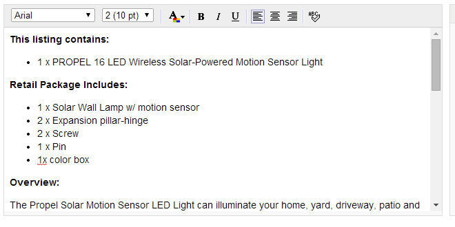 第七步:复制粘贴已经做好的宝贝描述,描述要尽量把产品重要属性讲清楚,简洁明了