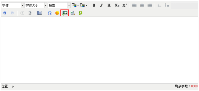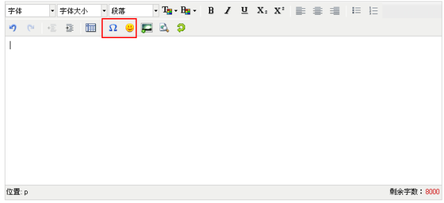 第二排从左至右依次为,撤销、取消撤销、增加缩排、减少缩排、插入表格、特殊字符、插入表情、插入图片、预览、全部清空;