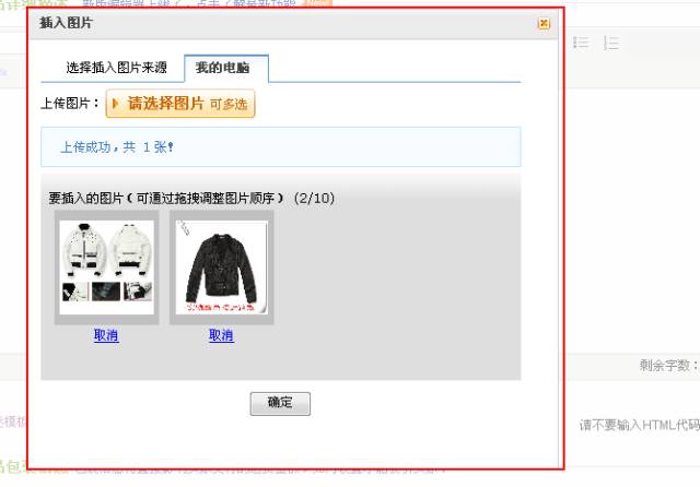 确认上传的产品图片都是您所需要的之后,点击“确定”,即可将图片上传到编辑器内,对图片进行编辑。