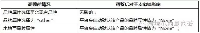 此外,赢商荟提醒各位卖家,北京时间2016年6月30日起,针对“2016不允许无商标产品存在的类目”下的新发产品,将不能再使用“None”品牌属性值;其余类目在北京时间2016年12月31日之前仍可选择“None”品牌属性值进行发布。