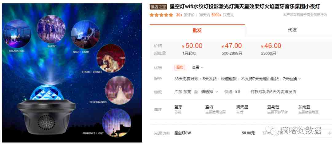 这款房间投影灯在独立站售价为59.95美元。其实在国内已经有相似产品,在1688上同款产品标价为50元,远远低于独立站售价。